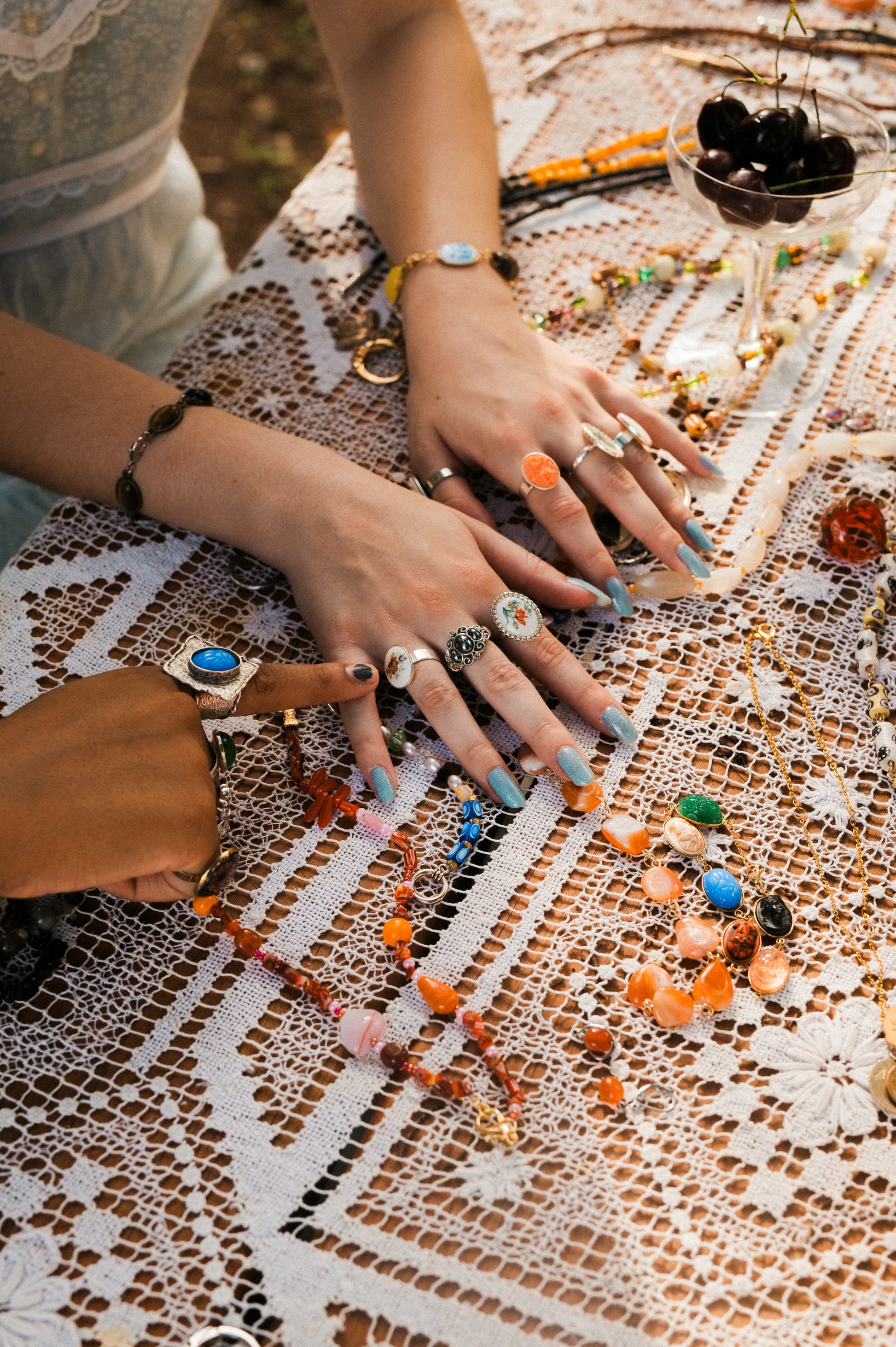 Oversized, adjustable ring with a vintage blue scarab cabochon.